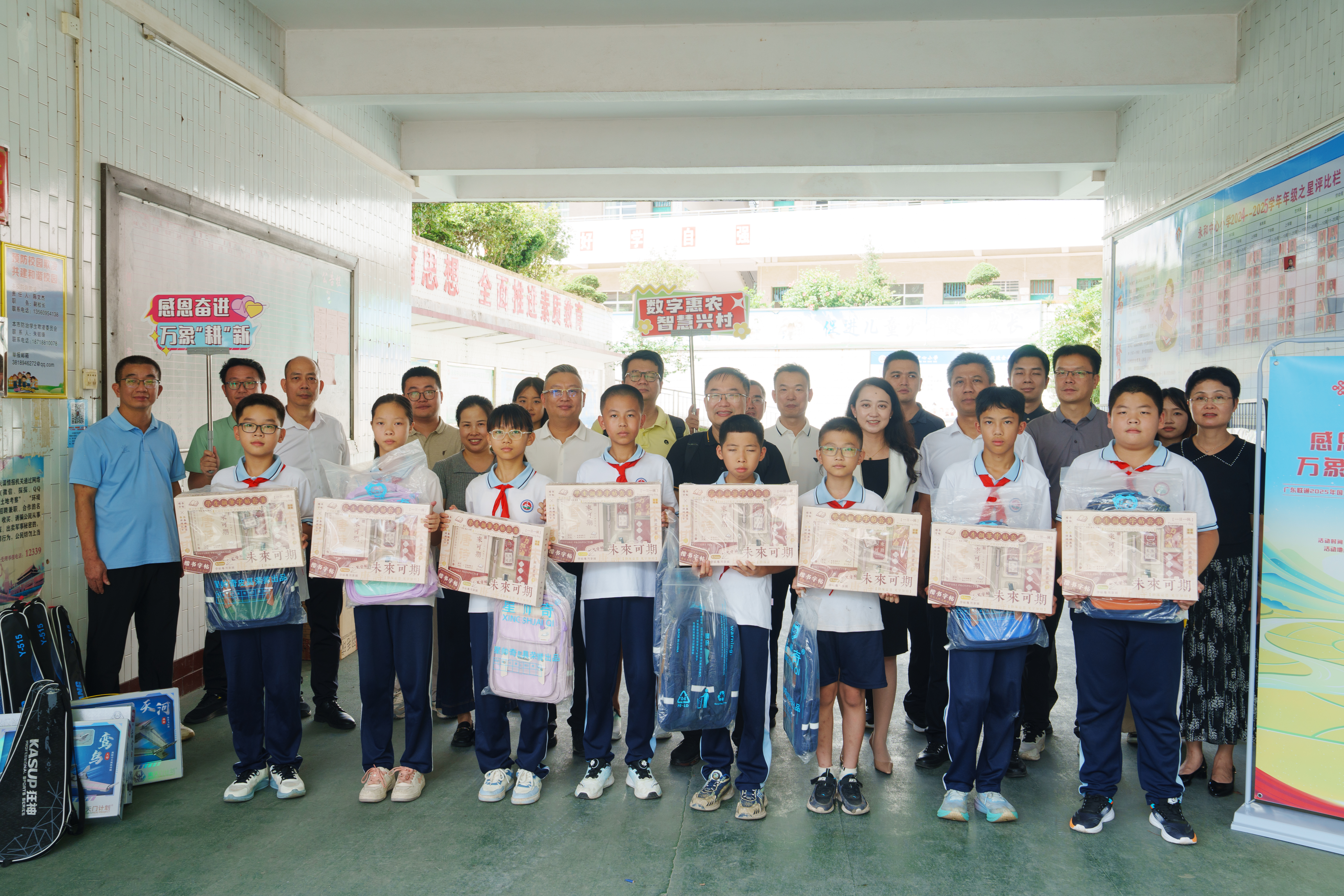 广东联通聚焦永和镇民生短板,投入专项资金实施系列惠民工程:完成自来水管网改造,让村民喝上“放心水”;安装太阳能路灯,点亮乡村“夜归路”;推进村道硬底化建设,打造出行“平安道”;开展绿美植树行动,绘就“生态宜居图”。与组团帮扶单位省地方志办公室协同推动《永和镇志》等镇村志编修,建立沙坪村史馆、祝枝山书法园(墨林藻海)等,探索以文化传承助力乡村振兴的有效路径。同时,广东联通还关注乡村教育和医疗事业的发展,着力提升公共服务水平,为卫生院配备现代化医疗设备,让村民享受优质医疗资源,为中小学升级信息化教学设施,让学生共享数字教育成果。在永和小学的探访中,与会嘉宾们还为孩子们送上了书籍、书包等文具,勉励他们勤学奋进,追逐梦想。